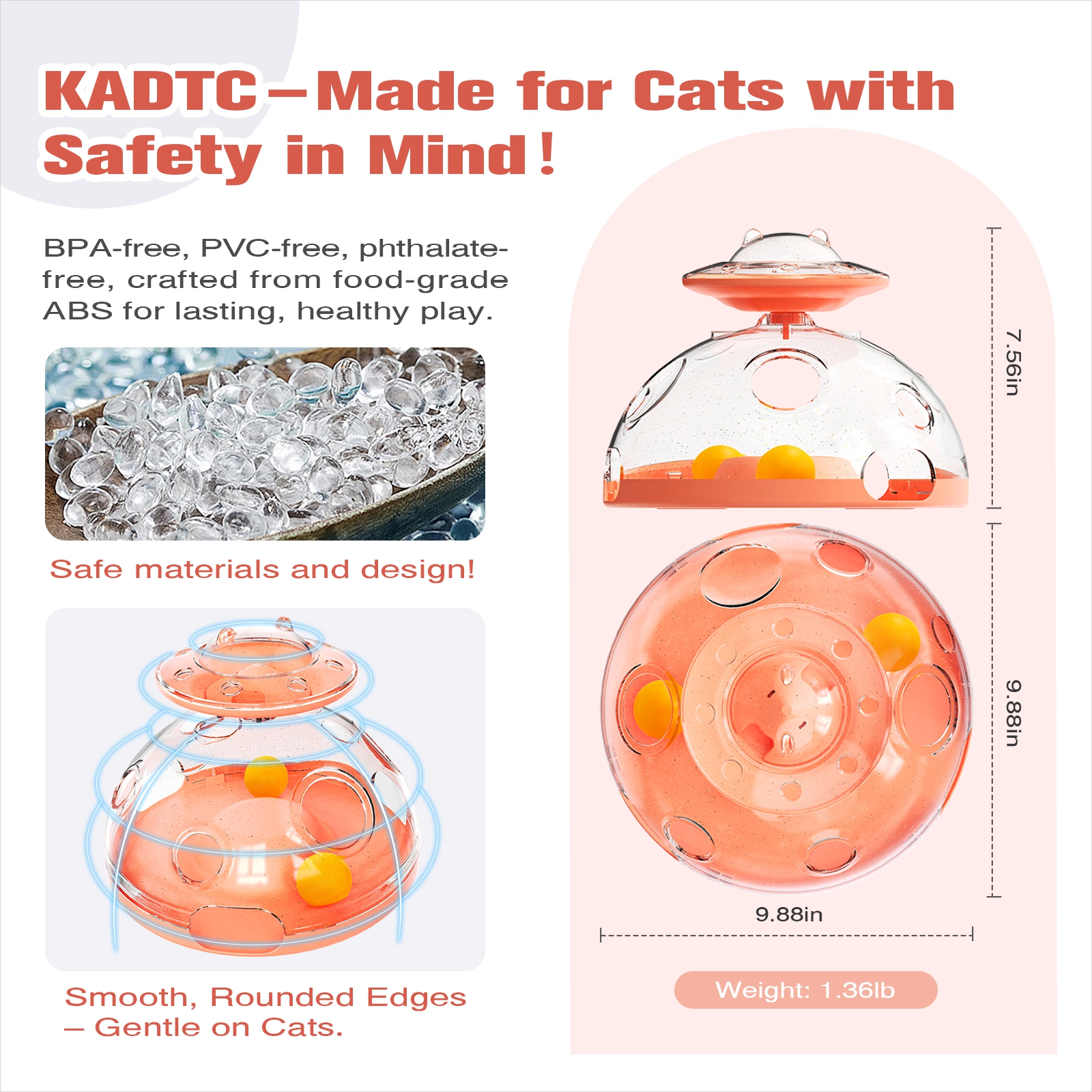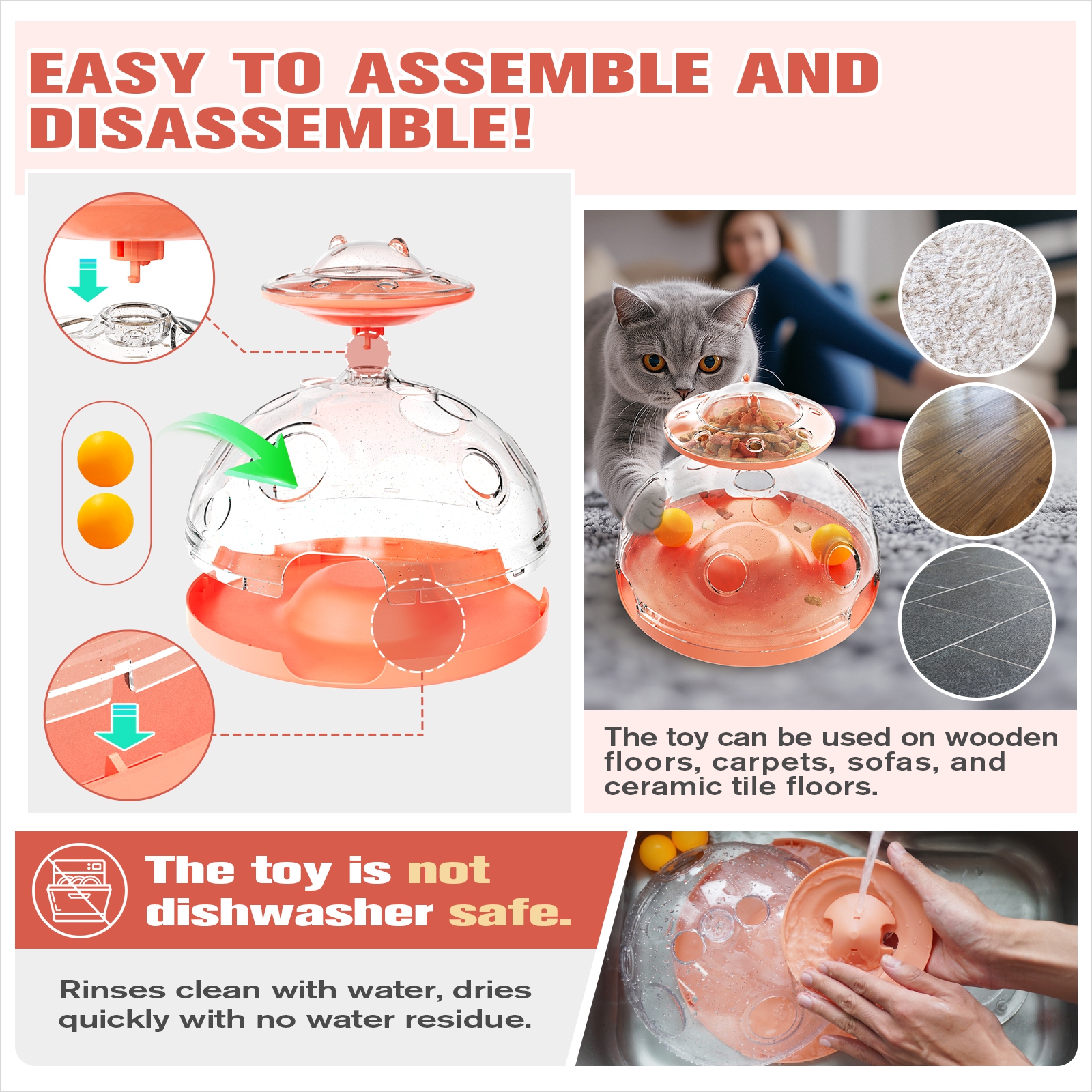 2 The toy is designed into a transparent semi-spherical shape, with 2 large ping pang balls, a glow ball, 4 cotton balls, and a large feather inside. The cat can touch the balls and feathers from different angles through the holes on the shell. Several large holes are designed on the transparent shell, which is convenient for the owner to put cats' favorite gadgets into the toy, which is the DIY process according to the cat's preference, so that the cat has a variety of playing ways;